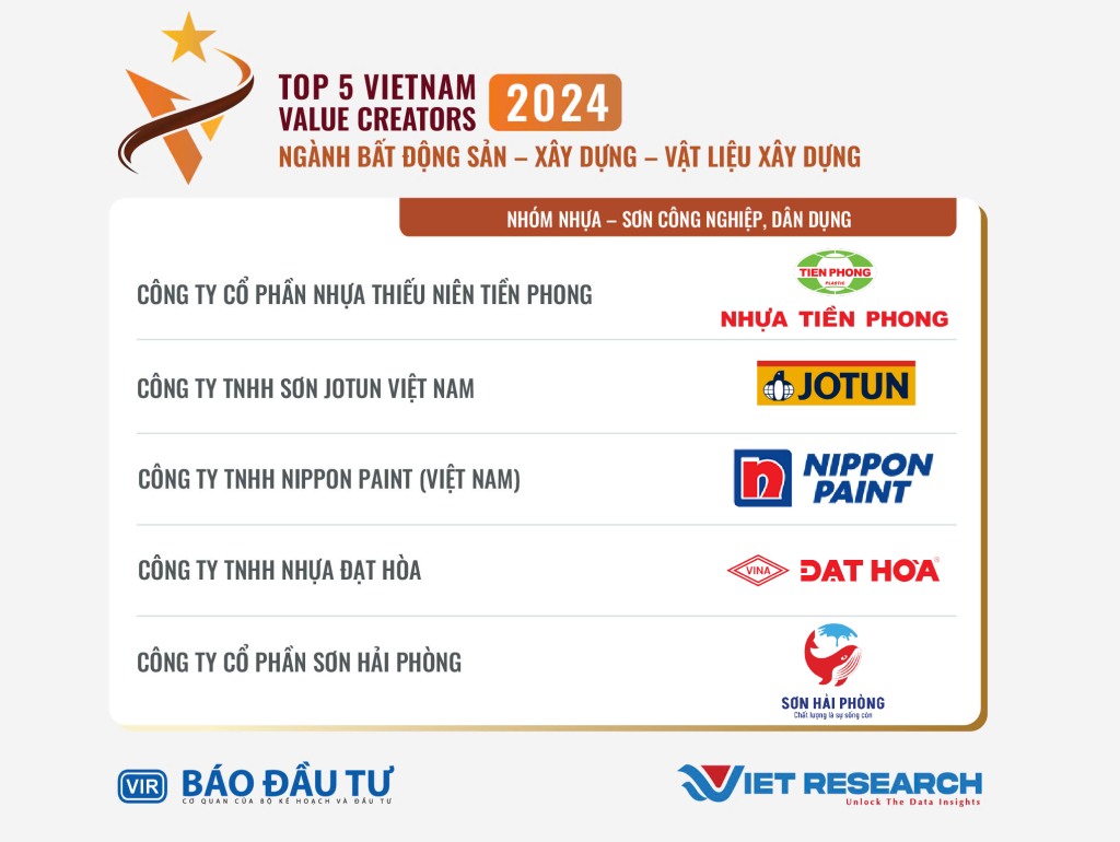 Danh sách 7: Top 5 Doanh nghiệp tạo giá trị hàng đầu Việt Nam 2024 nhóm ngành Nhựa – Sơn công nghiệp, Dân dụng